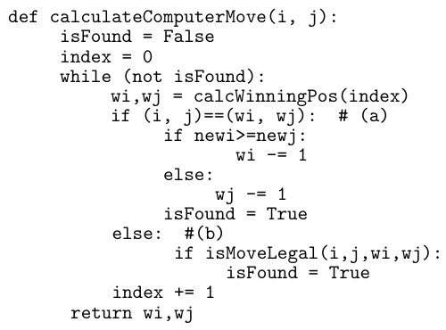 インターネットに出ている戦術 (O. Kreylos, 1999) を拝借します。c言語ですが、Pythonで書き換えると右のようになります。(i, j) はユーザーが打った位置です。